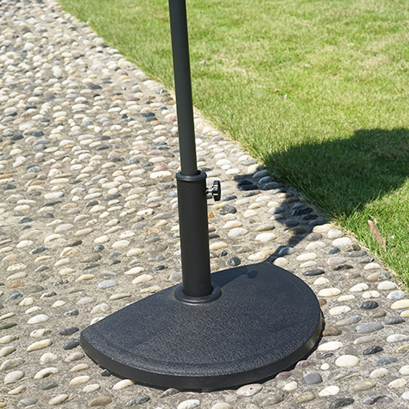 Ang batayan ay gawa sa mataas na kalidad na materyal ng dagta at may timbang na 9 kg, tinitiyak ang katatagan at tibay nito. Ang materyal na dagta ay hindi lamang may magandang paglaban sa panahon, maaaring pigilan ang impluwensya ng mga sinag ng ultraviolet, pag -ulan, at mga pagbabago sa temperatura, ngunit mayroon ding mga katangian ng paglaban sa kalawang at kaagnasan, na nagpapahaba sa buhay ng serbisyo ng produkto. Ang timbang ng 9 kg ay maaaring magbigay ng sapat na suporta para sa parasol upang maiwasan ito mula sa pagbagsak ng malakas na hangin at matiyak ang ligtas na paggamit.