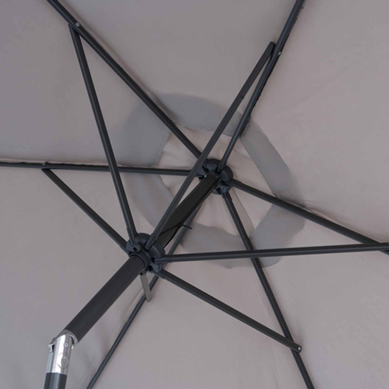 Ang payong poste ay gawa sa pinong bakal na may diameter ng φ34/37mm o φ38/38mm, na tinitiyak ang katatagan at kapasidad ng pag-load ng payong. Ang mga buto -buto ay gawa sa 12mm*18mm bakal na buto -buto, na may mahusay na paglaban ng hangin at maaaring mapanatili ang payong flat at matatag kahit na sa malakas na hangin.