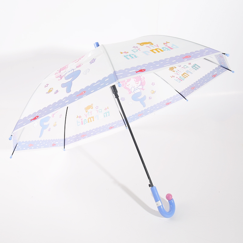 Ang payong ng mga bata na ito ay gawa sa transparent na PVC, na may katangi -tanging disenyo ng payong at nakatutuwang mga pattern ng buhay sa dagat tulad ng mga mermaids, balyena, maliit na isda, atbp, mayaman sa mga kulay at puno ng kasiyahan sa bata. Ang mga salitang "medyo maid" ay nakalimbag din sa payong, na pinatataas ang saya at pagiging kaakit -akit ng produkto. Ang gilid ng payong ay pinalamutian ng maselan na puntas, na ginagawang mas kaibig -ibig at mainit ang pangkalahatang disenyo.