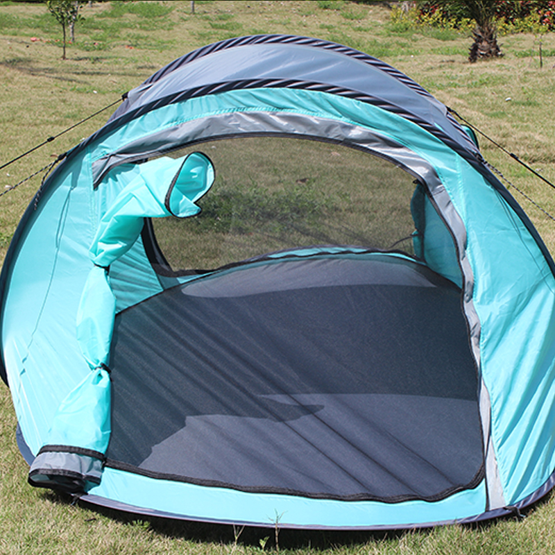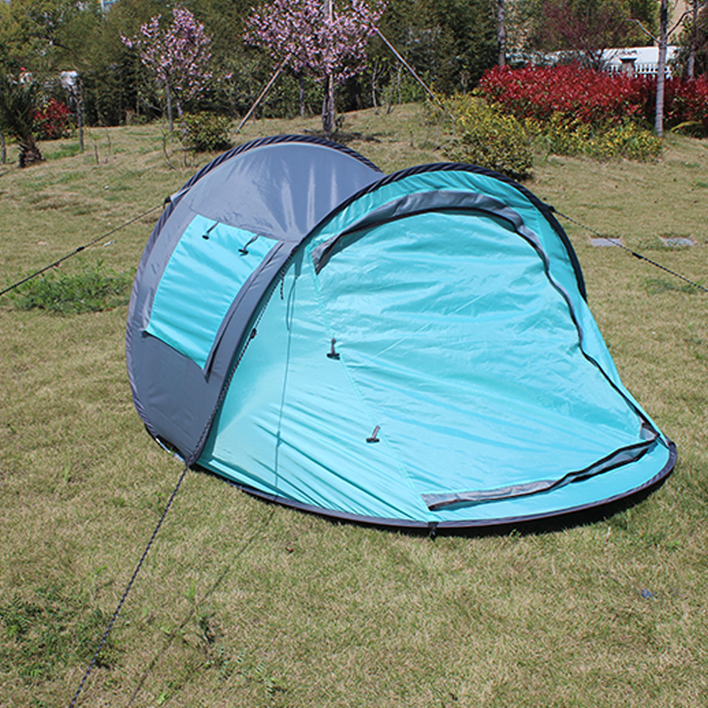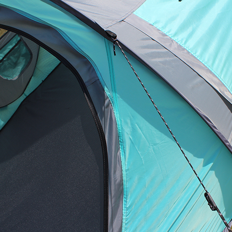 Ang panlabas na layer ng tolda ay gawa sa 190T polyester na tela na may patong ng PU, na may mahusay na hindi tinatagusan ng tubig at pag -andar ng proteksyon ng UV. Ang sahig ay gawa sa 90g na tela ng oxford, na kung saan ay matibay at matibay at maaaring epektibong maiwasan ang panghihimasok sa kahalumigmigan at buhangin.